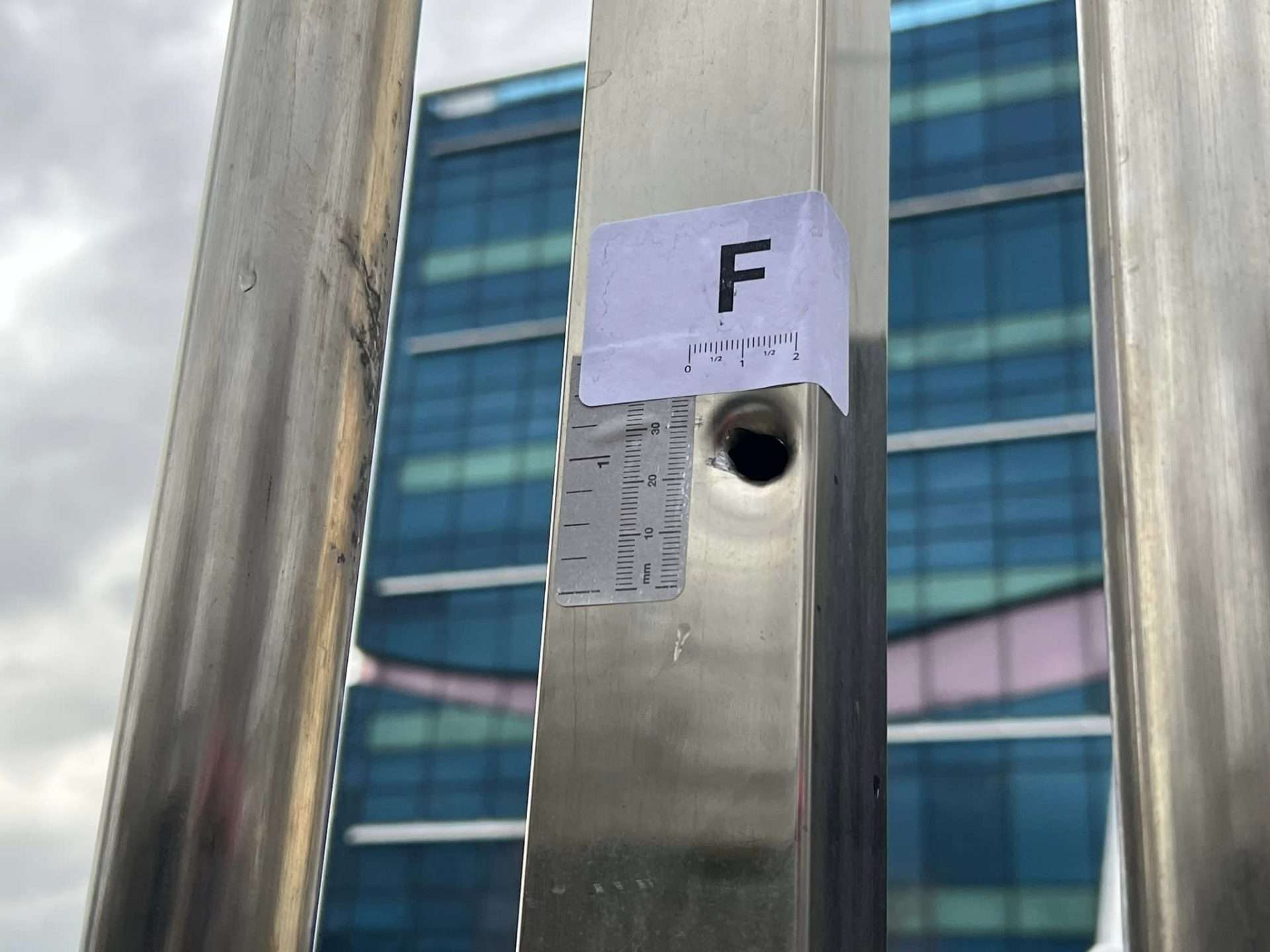 Më poshtë, janë disa pamje të plumbave, shenjat që breshëria e tyre ka lënë pas. Hekurat e rrethimit të jashtëm dhe vetratat e xhamit janë mbushur me plumba, të cilat janë shënjuar nga grupi i hetimit në kuadër të hetimeve që po kryhen për zbardhjen e plotë të sulmit.