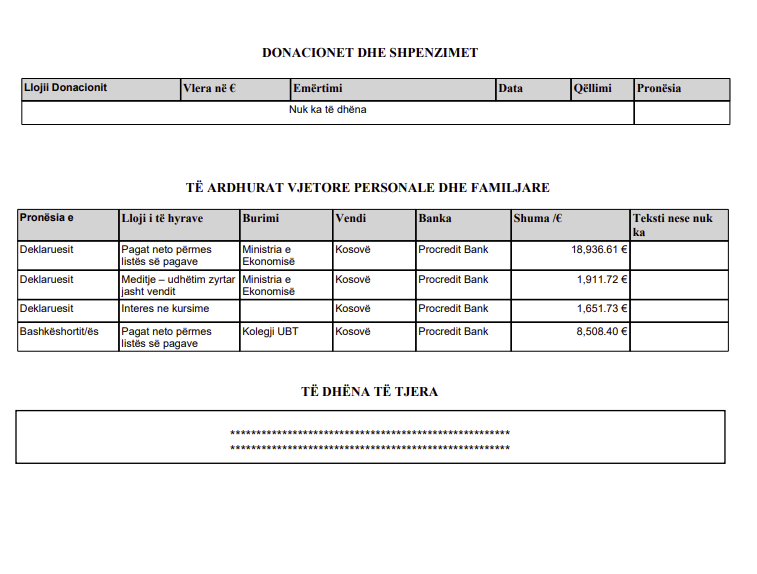 Ajo ka deklaruar edhe një veturë Renault të blerë nga kursimet në vlerë 16 mijë euro.