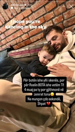 Partnerja e tij, Selvije Jao, ka ndarë në rrjetin social Instagram një moment emocional, duke publikuar një foto ku artisti shfaqet pranë djalit të tyre. Krahas imazhit, ajo ka shkruar një mesazh prekës në kujtim të tij: