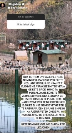 Ndryshe nga Ledjona që i është dashur të punojë deri natën vonë për të nxjerrë bukën e gojës si një nënë e vetme për të rritur vajzën e saj që shpesh ka fjetur vetëm dhe e pangrënë. Uroj që shembulli i mirë të dominojë. Këtë nominim vota ime shkon për Ledjonën”, shkruan Olta.