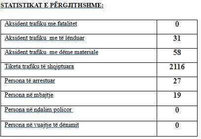 Gjatë këtyre 24-orëve, janë raportuar gjithsejt 89 aksidente, 31 prej tyre me persona të lënduar, ndërsa 58 vetëm me dëme materiale.