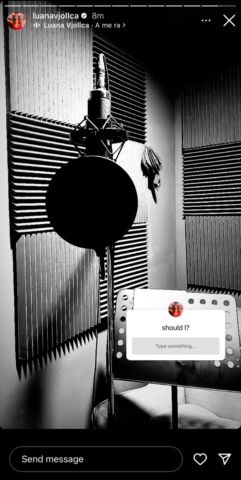 Ajo ka publikuar një foto nga një studio muzikore, teksa sipër saj shkruan: “A duhet ta bëj?”