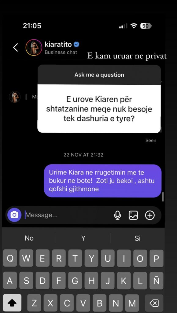 Ajo shprehet se e ka uruar moderatoren me një mesazh në inboxin e saj privat, ndërsa bashkangjitur ka postuar edhe urimin që i ka dërguar.