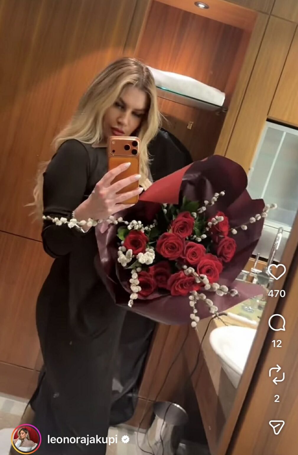 Në mesin e shumë urimeve dhe dhuratave që ka pranuar, Leonora ka pozuar me vetëm njërën nga to.