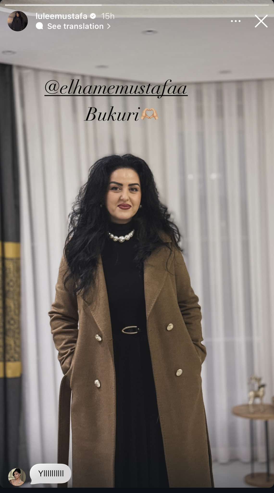 Lulja ka publikuar në Instagram një fotografi të motrës së saj, Elhames, duke e vlerësuar atë për bukurinë e saj.