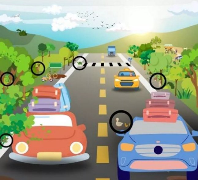 Imazhi duket se tregon disa vetura që udhëtojnë përgjatë një rruge, dy prej të cilave duket se po nisen për pushime, duke gjykuar nga bagazhet e grumbulluara lart në çatitë e tyre.