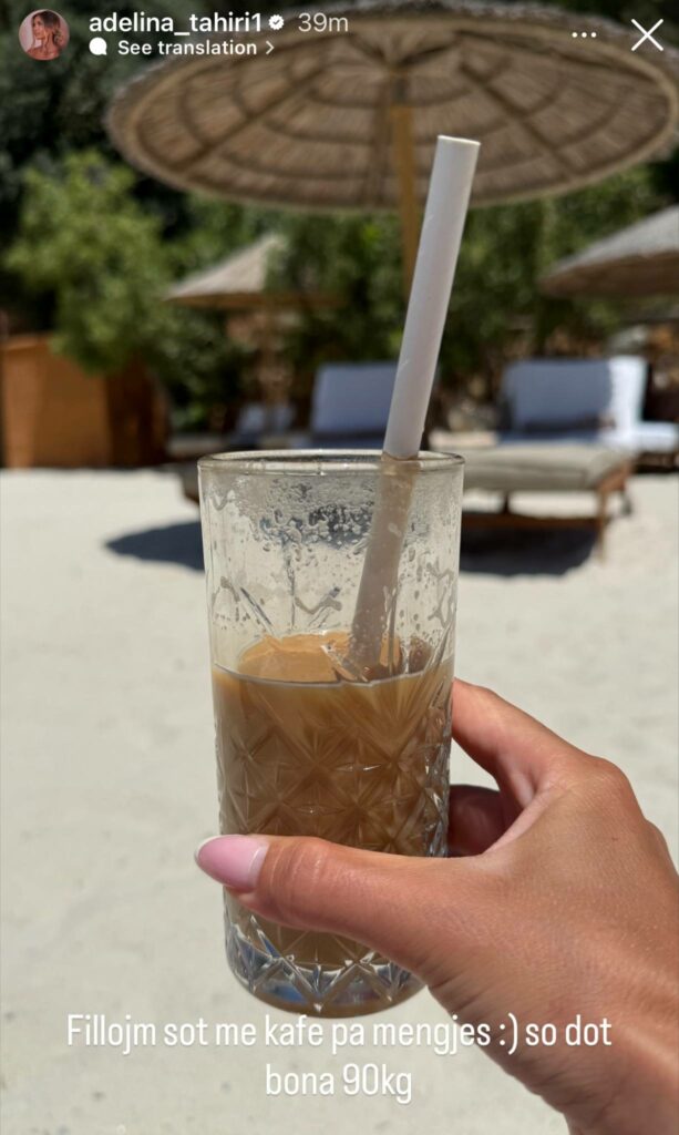 “Fillojmë sot me kafe pa mengjes, se dot bona 90 kg”, ka shtuar ajo krahas kësaj fotografie të shpërndarë në llogarinë e saj në Instagram