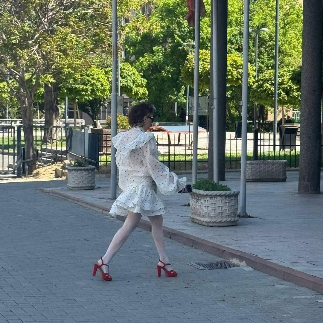 Matoshi, e cila shpeshherë ka eksperimentuar me stilin e saj të veshjes gjatë paraqitjeve publike, këtë herë është shfaqur me një fustan të bardhë të shkurtër me pika të zeza, të kombinuar me hallahopkë të bardha dhe taka të kuqe – një kombinim që padyshim nuk kaloi pa u vënë re nga të pranishmit dhe mediat.