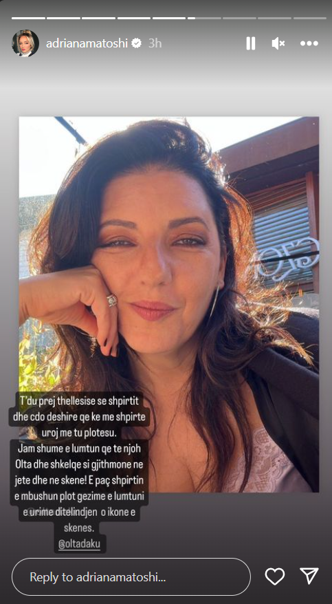 Adriana Matoshi sot ka ndarë një Instastory me ndjekësit e saj.