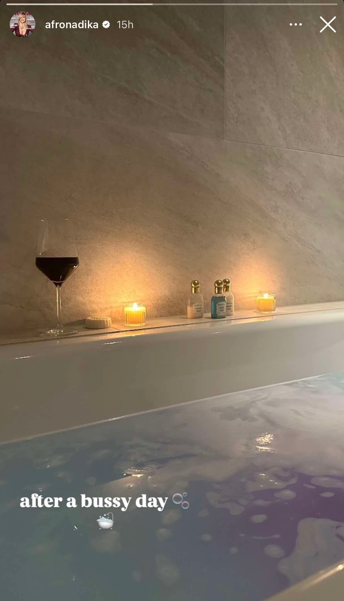 Pas këtyre deklaratave, ajo ka postuar një fotografi nga një moment relaksi në vaskë, ku nuk shihet personi tjetër, por sugjeron praninë e tij, shkruan “Kosovarja”.