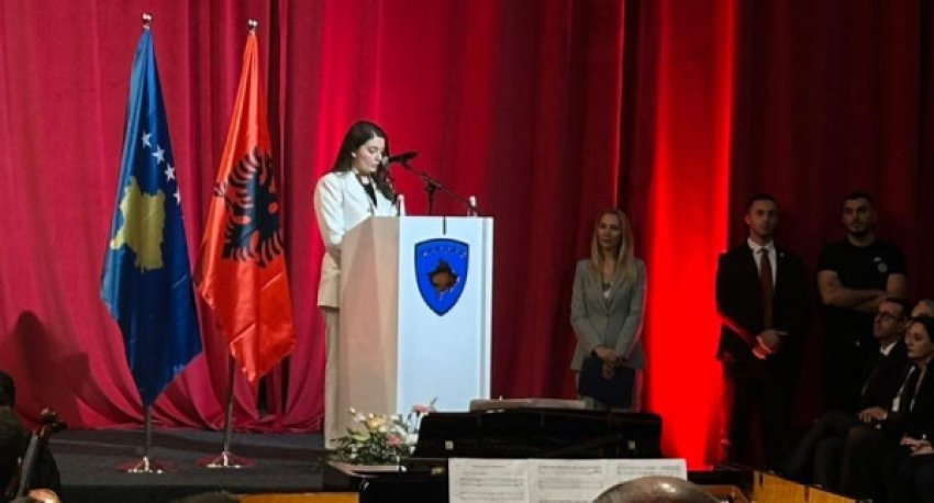 “Ata mbetën ëndrra të ndërprera në mes, buzëqeshura të ndalura padrejtësisht. Jetë të pajetuara. Por, pikërisht në këtë dhimbje lind përgjegjësia jonë si brez i ri, ne jetojmë edhe për ta. Ne mësojmë dhe punojmë edhe në emër të tyre. Çdo arritje e jona duhet të jetë vazhdim i ëndrrave që atyre iu mohua. Çdo sukses i brezit tonë duhet të jetë dëshmi se sakrifica e tyre nuk ishte e kot. Kështu kujtimi për ta nuk mbetet vetëm plagë në ndërgjegjen tonë por shndërrohet në zotim se liria e fituar me gjak do të mbushet me dije, drejtësi dhe me dinjitet. Një dijetar i lashtësisë është shprehur se ‘kur uji bie në dhe shndërrohet në baltë, ndërsa kur gjaku bie në dhe shndërrohet në atdhe’. Me këtë thënie qëndron e përmbledhur historia jonë, atdheu ynë është i larë me gjakun e bijave dhe bijve më të mirë të tij. Prandaj ai nuk është thjesht tokë është amanet, është besë, është përgjegjësi brezash”, tha ajo.