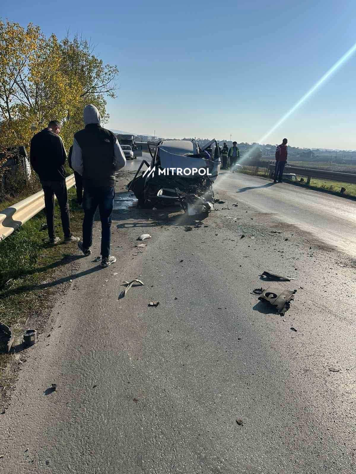 Në pamjet e publikuara nga Mitropoli shihen dy vetura tepër të dëmtuara nga përplasja.