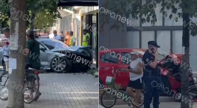 Madje nga përplasja e fortë, një nga makinat për pak sa nuk ka përfunduar brenda një lokali.