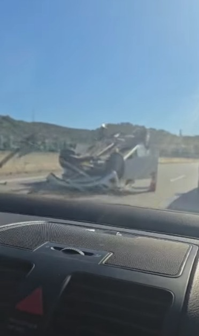 Në pamjet nga vendi i ngjarjes shihet se si një makinë është kthyer përmbys, teksa ende nuk dihen shkaqet.