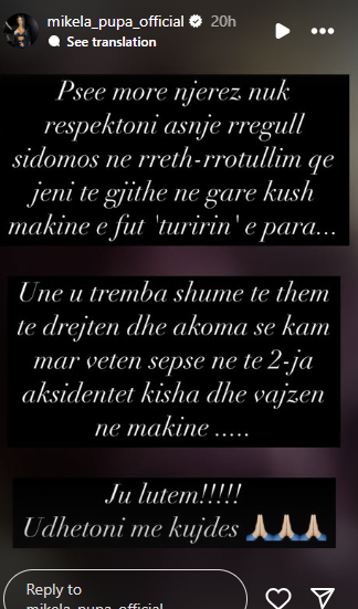 Tutje, ka njoftuar se është mirë dhe se është frikësuar shumë pasi kishte me vete në makinë vajzën e vogël, disa muajshe.
