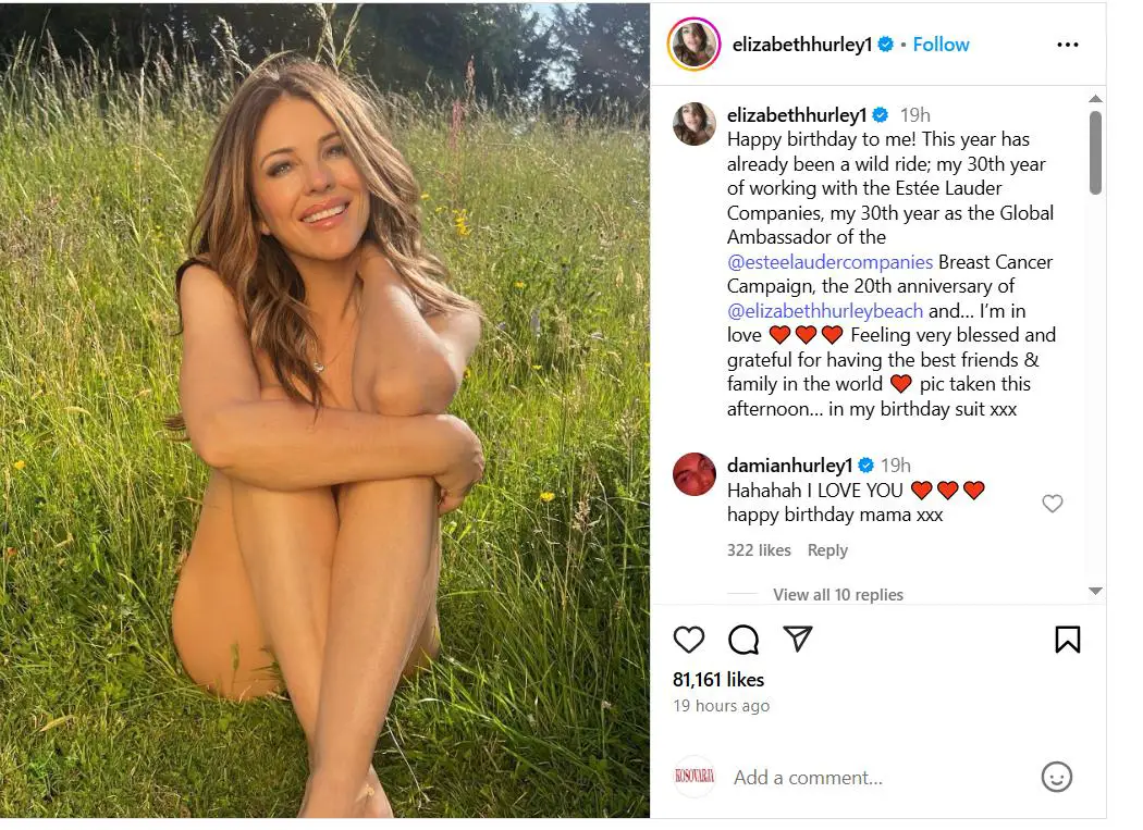 Aktorja Elizabeth Hurley festoi ditëlindjen e saj të 60-të me foto të reja që nuk i lanë shumë vend imagjinatës.
