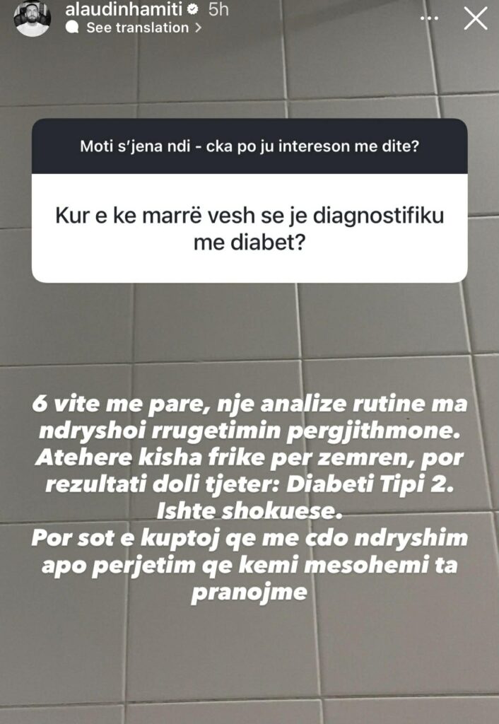 “6 vite më parë, një analizë rutinë ma ndryshoi rrugëtimin përgjithmonë. Atëherë kisha frikë pqe zemrën, por rezultati doli tjetër: Diabeti Tipi 2. Ishte shokuese. Por, sot e kuptoj që me çdo ndryshim apo përjetim që kemi mësohemi ta pranojmë”, ka shkruar Hamiti në përgjigjen e tij.