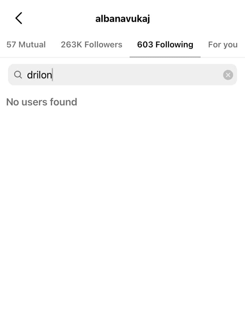 Andaj ajo që ka rënë në syrin e ndjekësve ishte edhe veprimi i menjëhershëm i Alba Vukaj, ku ajo ka heq nga lista e ndjekësve Drilonin.