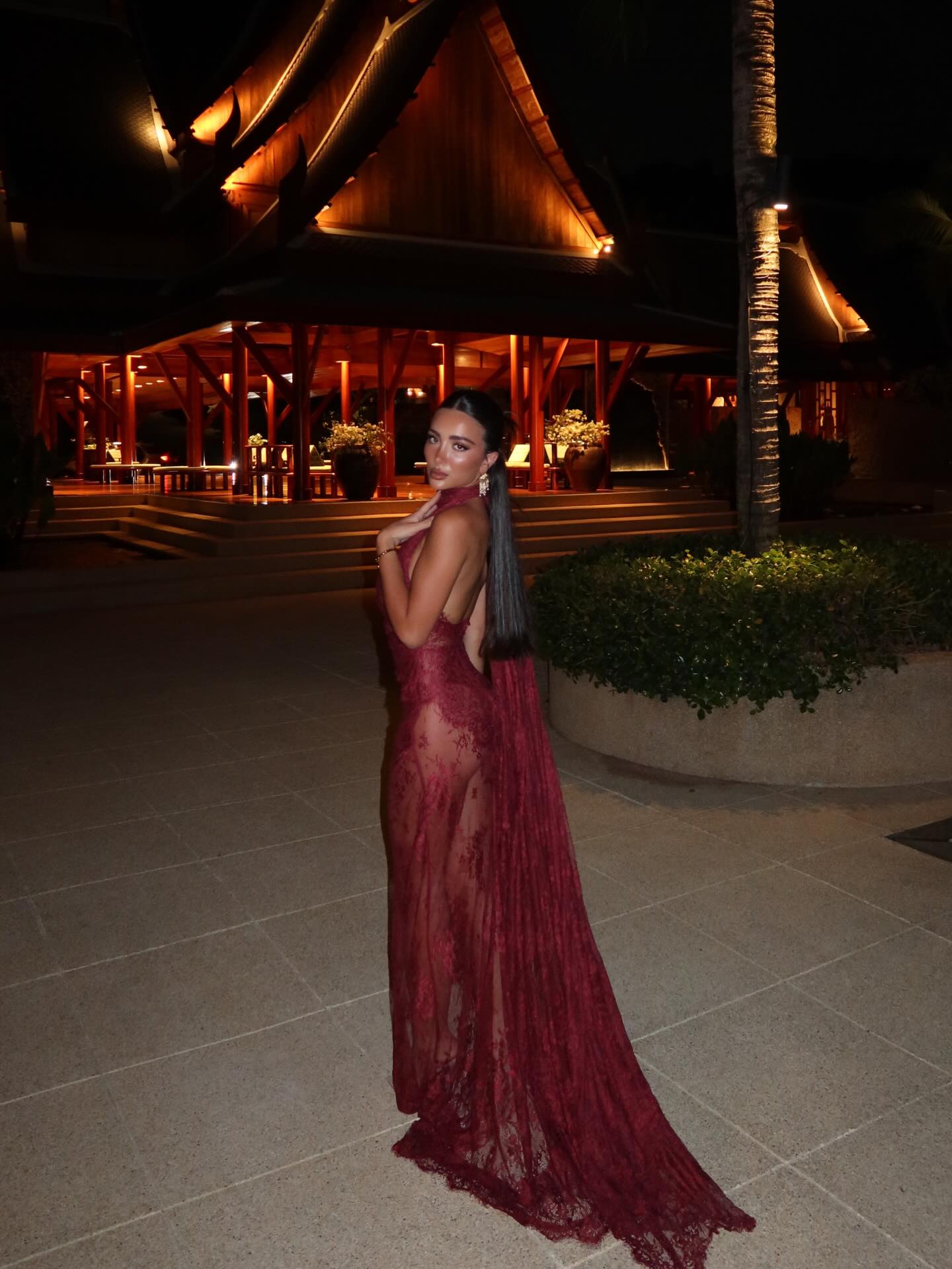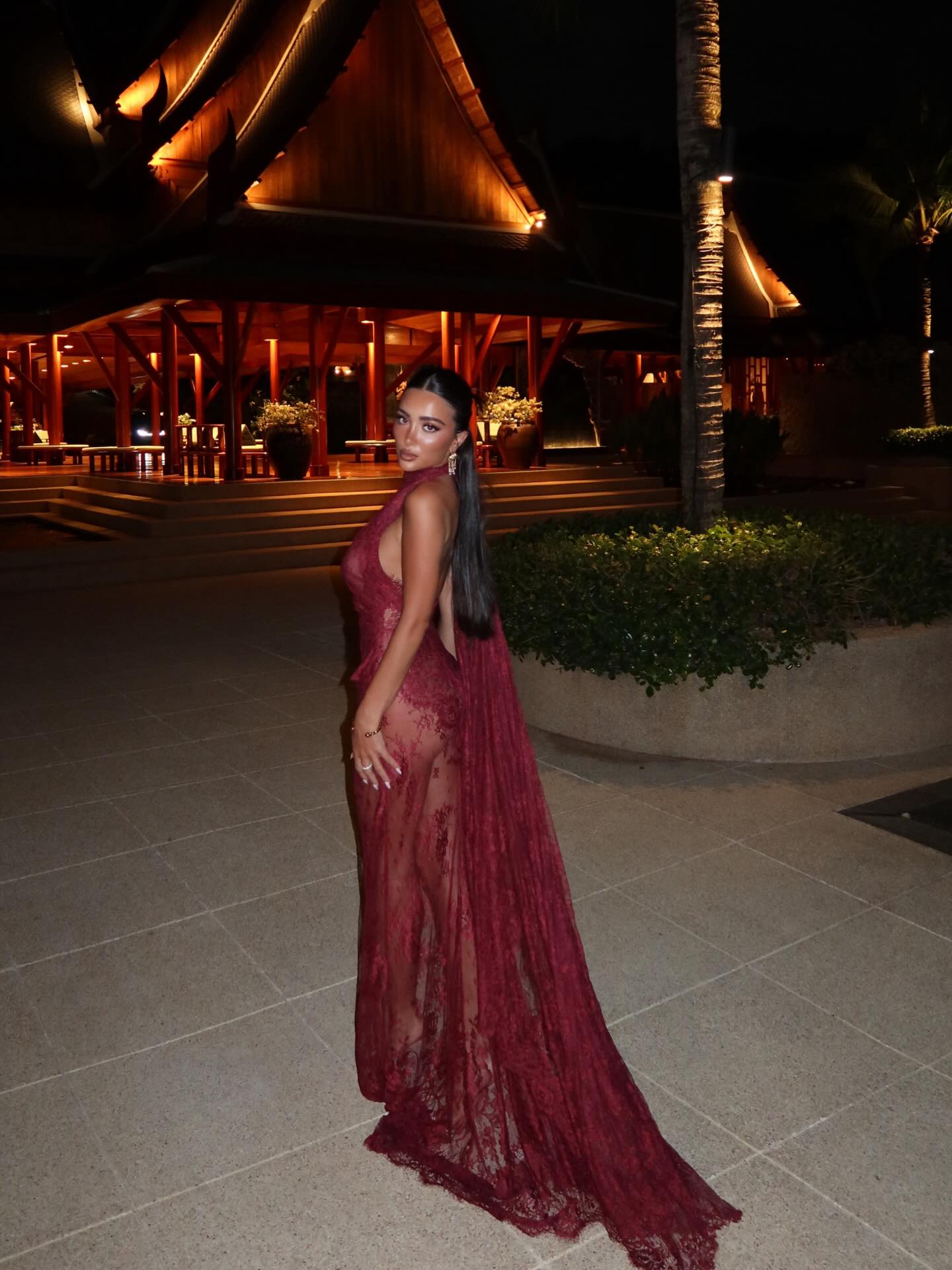 E veshur me një fustan të gjatë transparent ajo është shfaqur në një ambient luksoz nga Tailanda, shkruan Indeksonline.