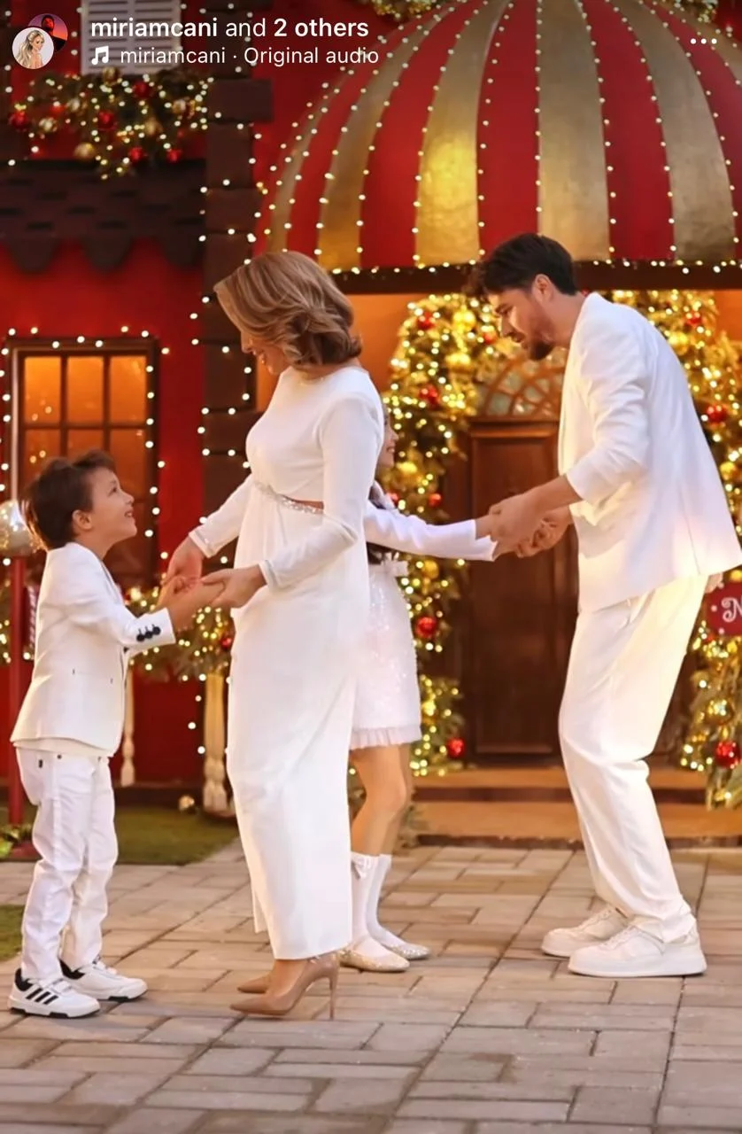 Çifti, që gjithmonë ka tërhequr vëmendjen për marrëdhënien e ngrohtë dhe përkushtimin ndaj familjes, ka publikuar pamje nga momentet e bukura që po kalojnë gjatë kësaj periudhe të vitit. Në video, Miriami është shfaqur me një fustan të bardhë elegant, duke shtuar një ndjesi festive dhe tepër të veçantë.
