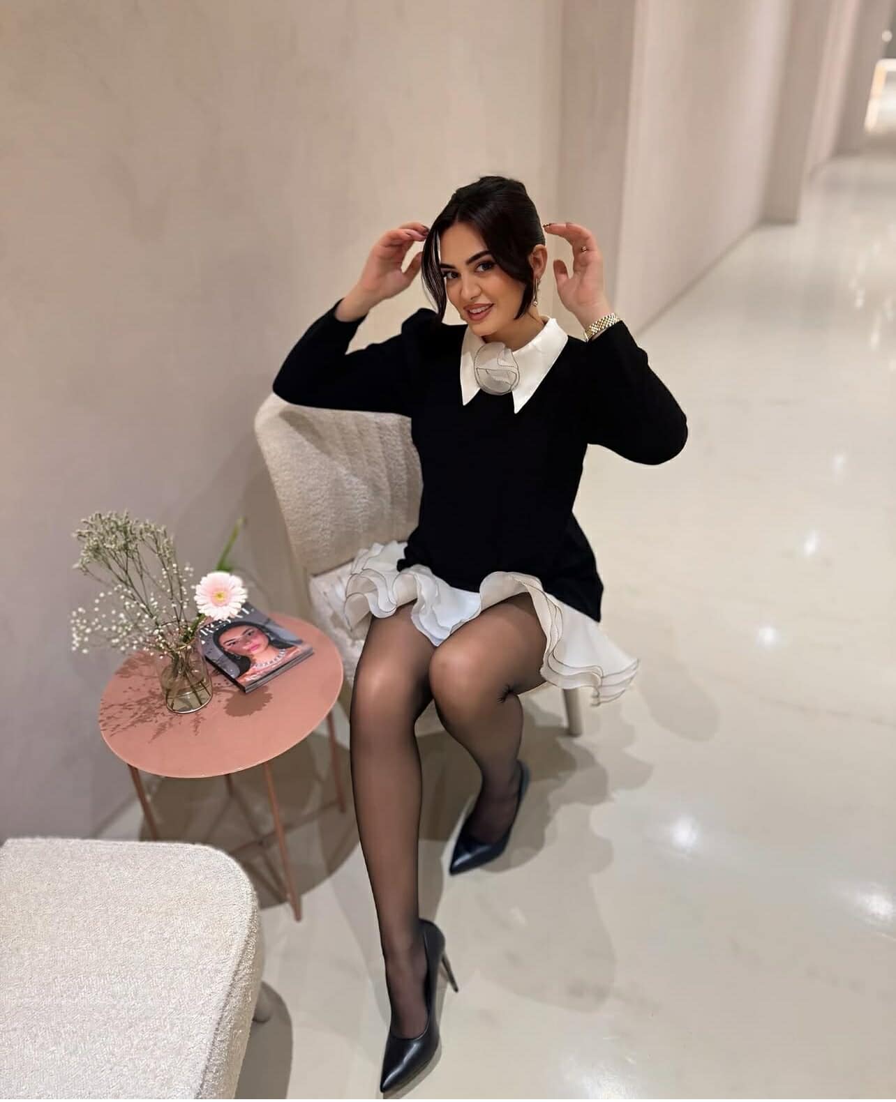 Këngëtarja, që ka një agjendë të ngjeshur me aktivitete muzikore, në këtë foto duket më ndryshe, me një fustan më të shkurtër, shkruan “Kosovarja”.