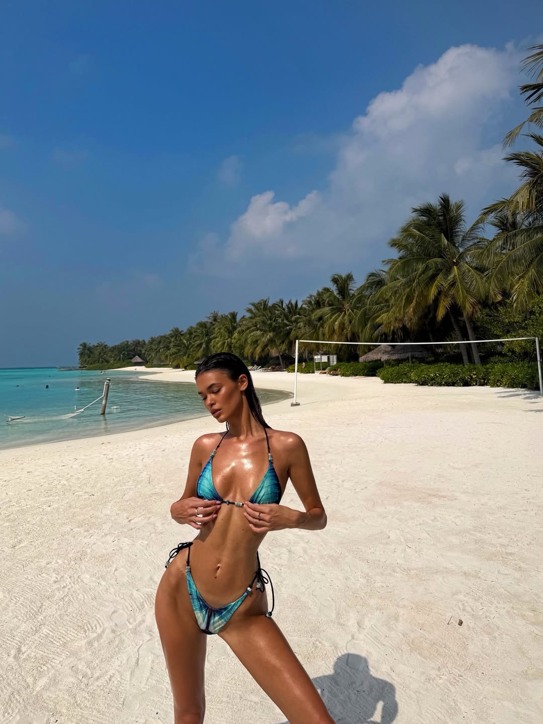 Në këtë foto, ajo shihet në një bikini të firmës Tiger Mist, duke theksuar linjat trupore efektive dhe një pamje natyrale që i rrëmben zemrat çdo admiruesi.
