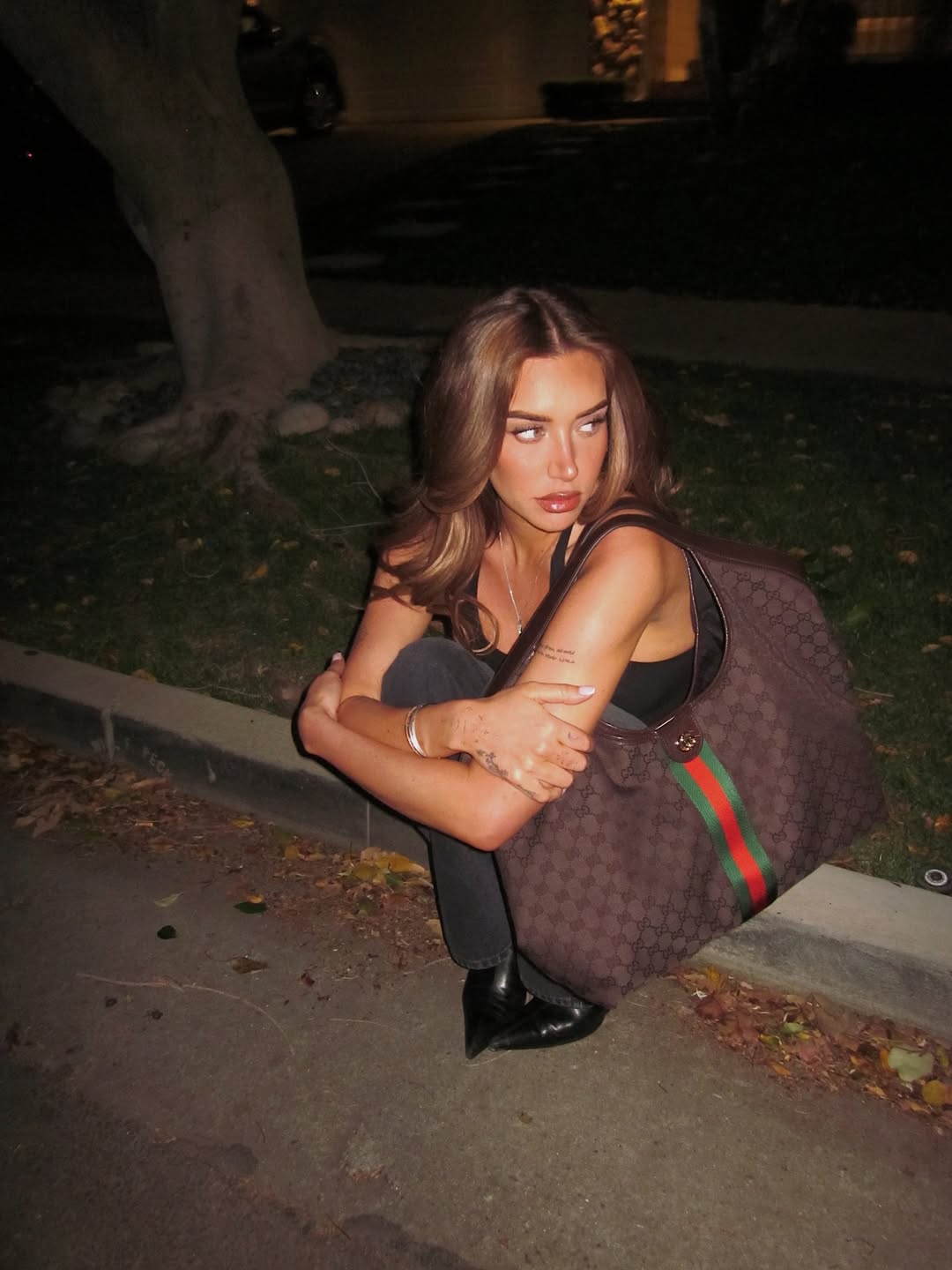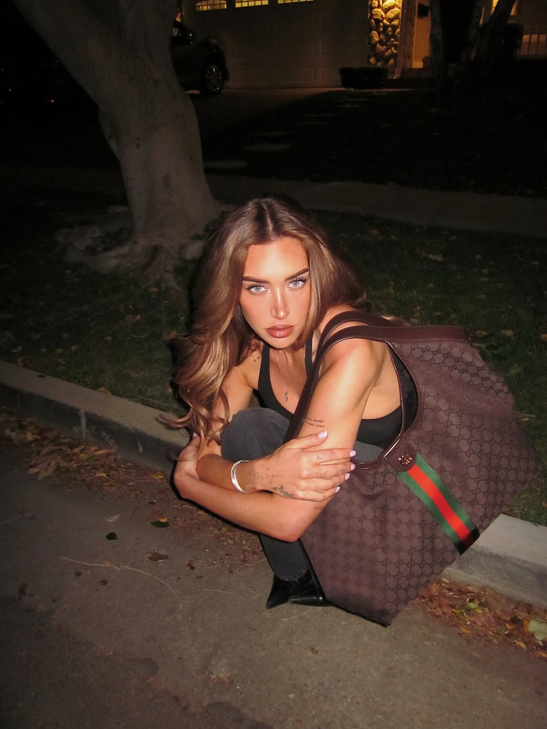 Pozuar me një çantë Gucci që i jep stilit të saj një nuancë luksoze, Anastasia me mjeshtëri ngacmon imagjinatën e fansave me një look unik në natyrë.
