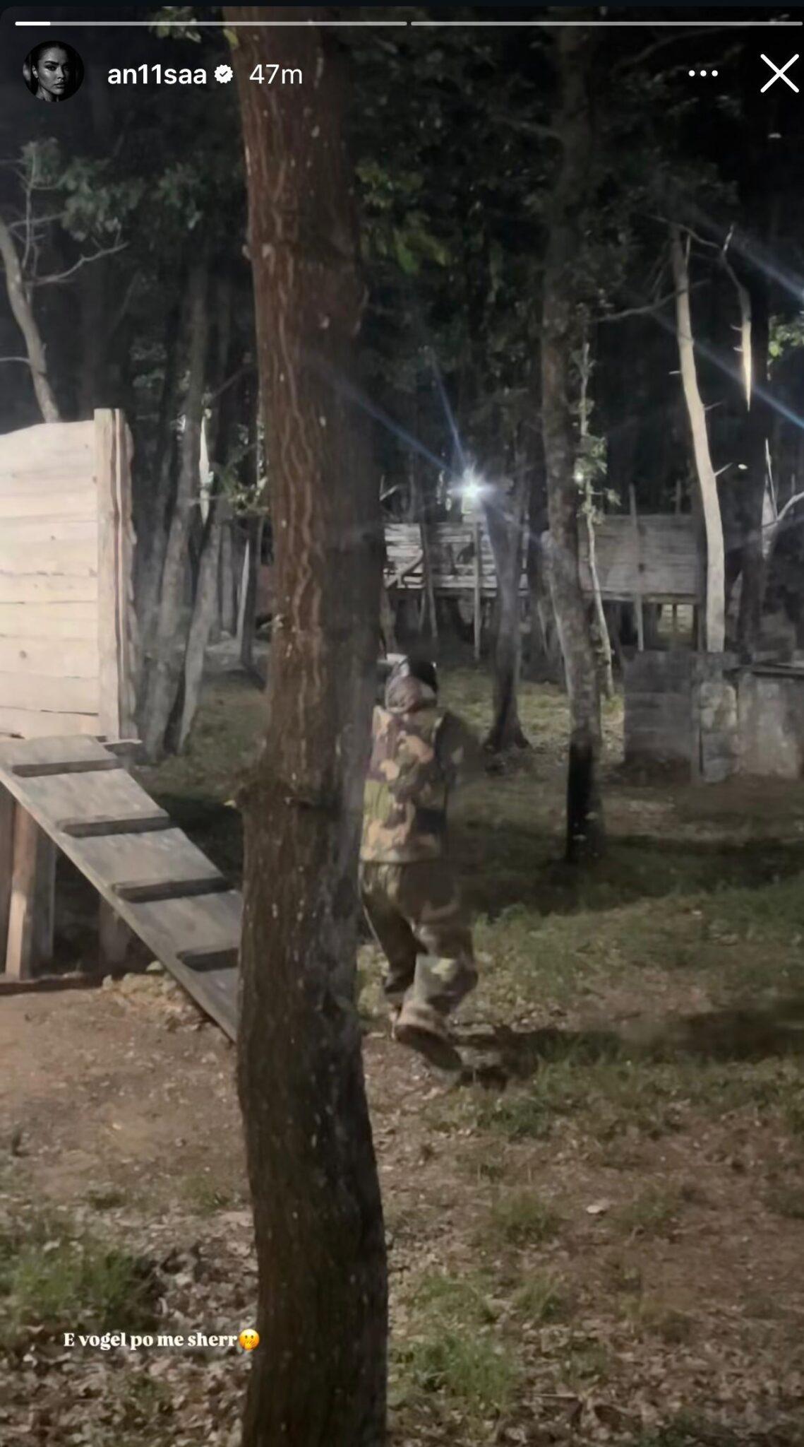 Të dy kanë ndarë postime nga vendi i njëjtë, një arenë paintball-i në pyll gjatë natës, dhe ndjekësit e vëmendshëm kanë vënë re detajet. Anisa ka postuar një foto ku duket me veshje ushtarake dhe ka shkruar: “E vogël po me sherr ”, ndërsa vetëm pak minuta më vonë, Edi ka shpërndarë një video nga i njëjti vend duke shkruar: “I madh po sherrin e vogël.”