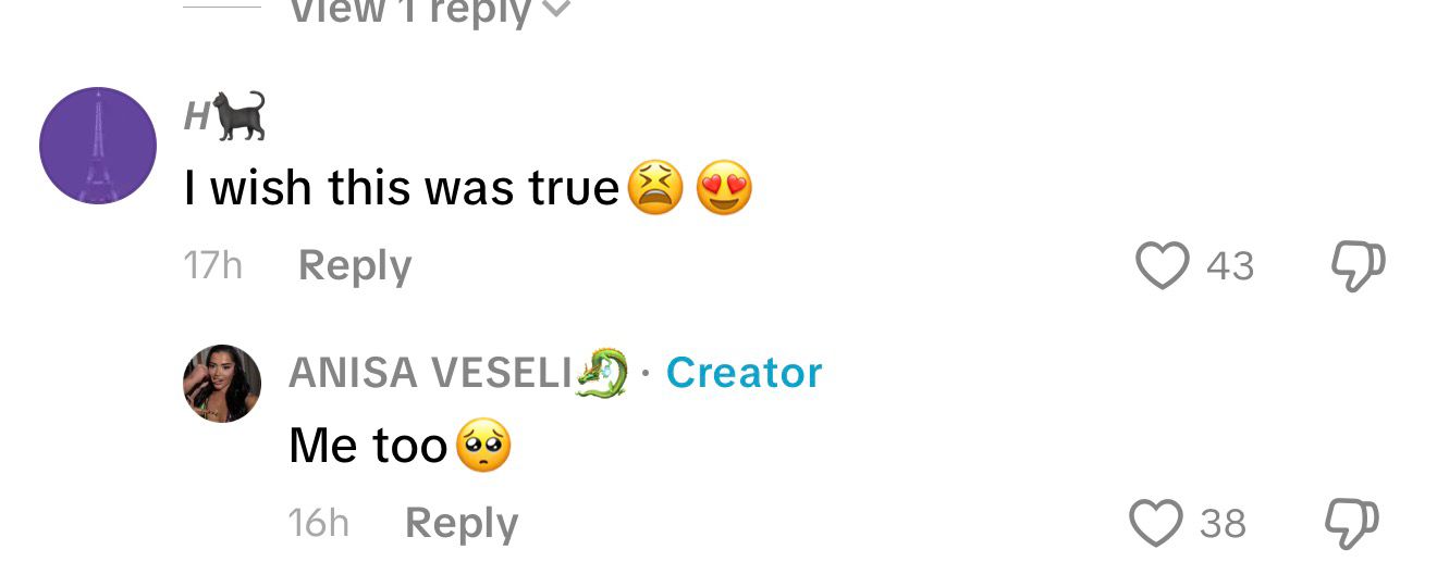 Kjo nuk është hera e parë që Anisa krijon video të tillë. Vetëm pak javë më parë, ajo kishte publikuar një tjetër TikTok ku inskenohej kinse çifti po fejoheshin.
