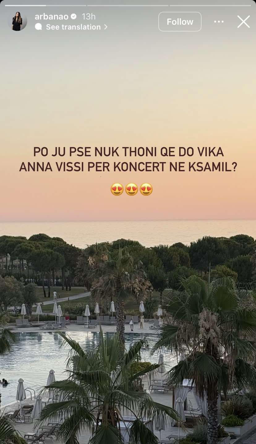 Në një postim Arbana ka bërë një pyetje që ngjalli reagime “Po ju pse nuk thoni që do vijë Anna Vissi për koncert në Ksamil?”