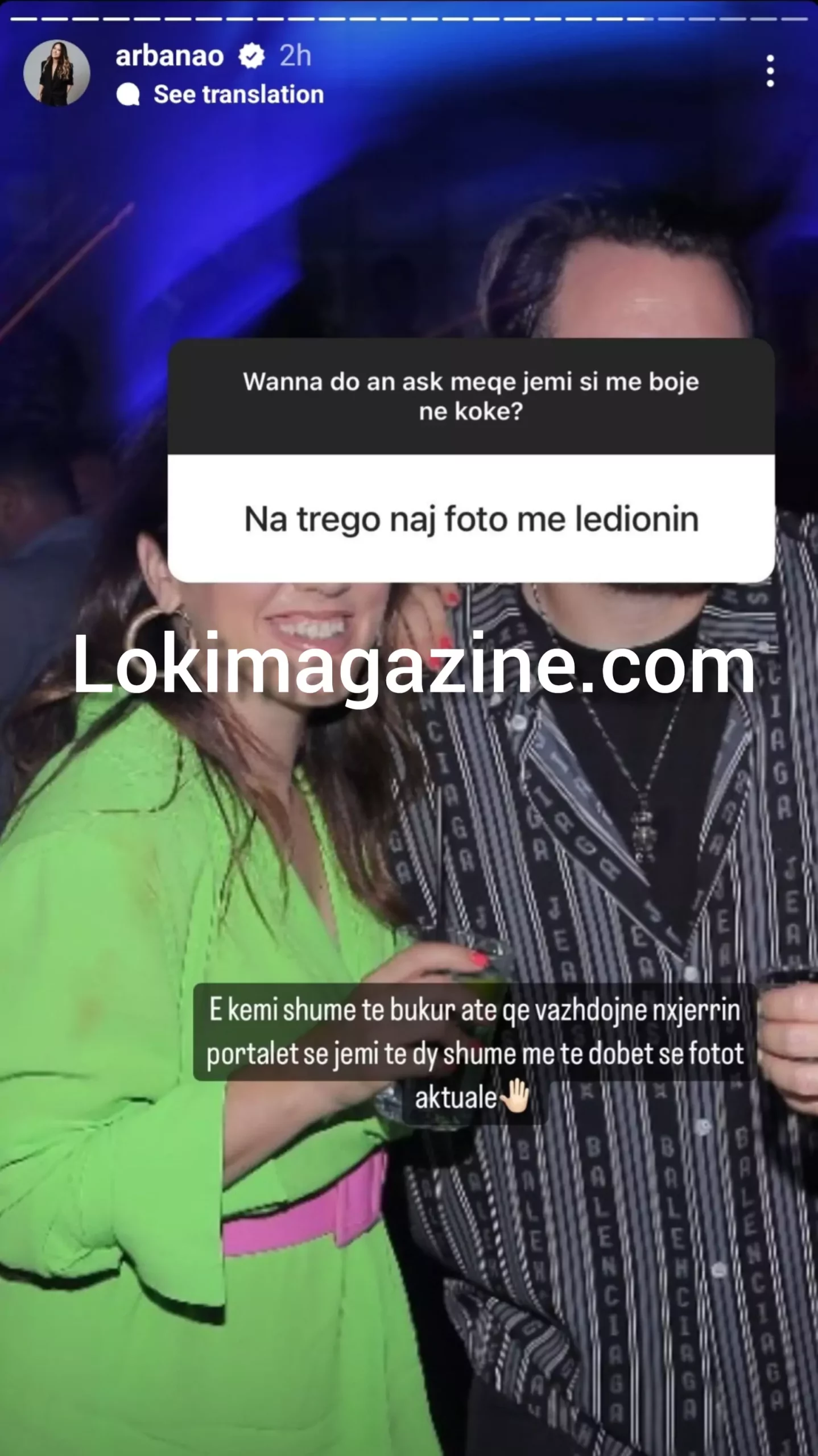 Në pyetësorin e krijuar prej saj në Instagram, një ndjekës e pyet Arbanën: “Na trego naj foto me Ledionin”.