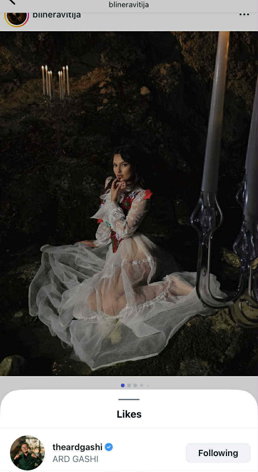 Së fundmi, një veprim i tij ka ngjallur shumë reagime në rrjet. Ai nuk ka lënë pa pëlqyer asnjë foto të moderatores së njohur Blinera Vitija, çka ka bërë që ndjekësit të hedhin dyshime për një afërsi më të madhe mes tyre, shkruan “Kosovarja”.