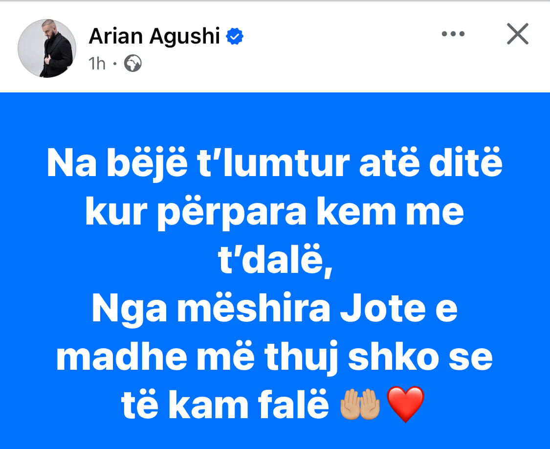 Reperi i njohur Arian Agushi ka ndarë një mesazh të fuqishëm dhe emocional në rrjetet sociale. Në një postim të fundit, ai shkruan: