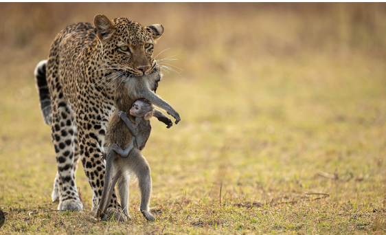 Luaneshat që kanë dalë për gjah gjithashtu kujdesen për pesë këlyshë që i kanë lënë të fshehur në bimësinë e parkut kombëtar Maasai Mara në Kenia.