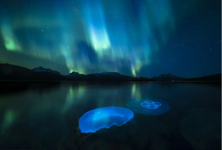 Audun Rikardsen përdori sistemet e tij të fokusimit dhe aperturës për të kapur kandilët e ujit në ujërat e vjeshtës në Tromsø, në veri të Norvegjisë, me qiellin e ndriçuar nga aurora borealis.