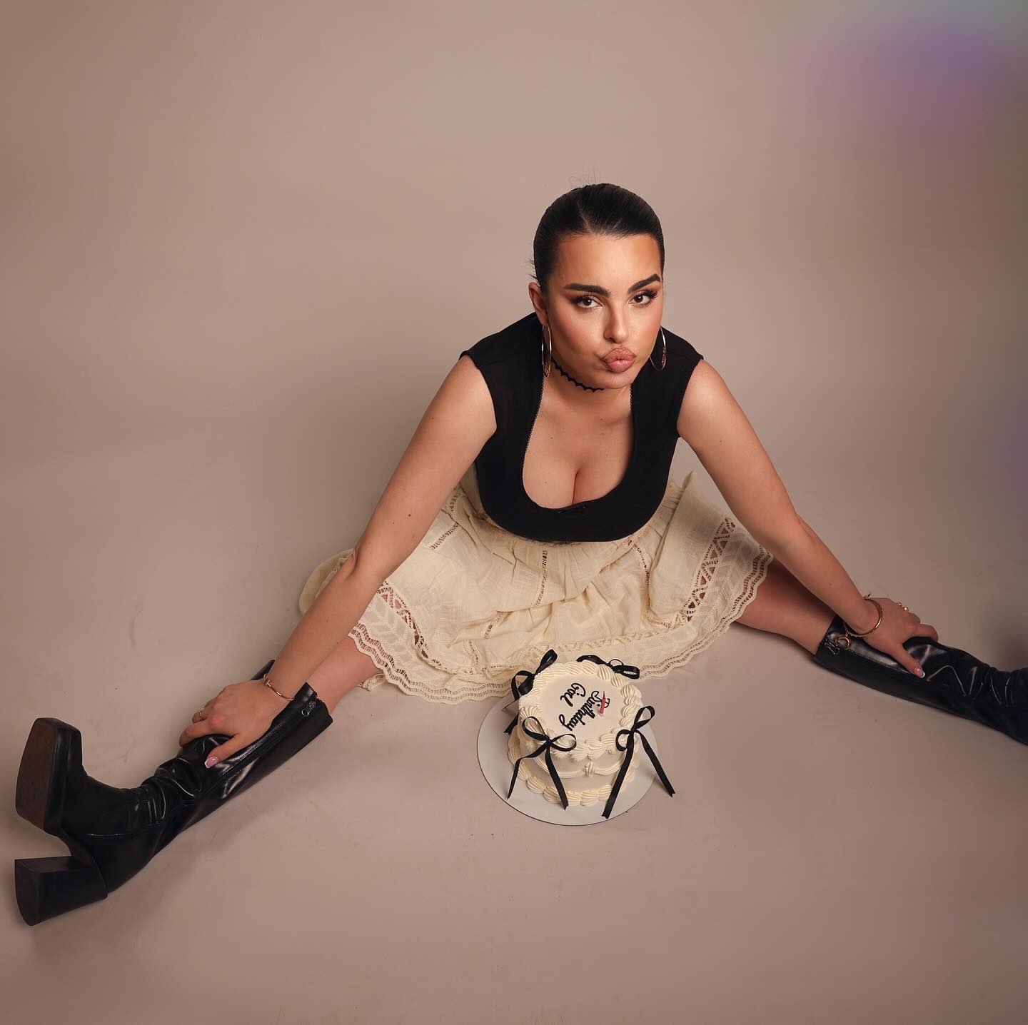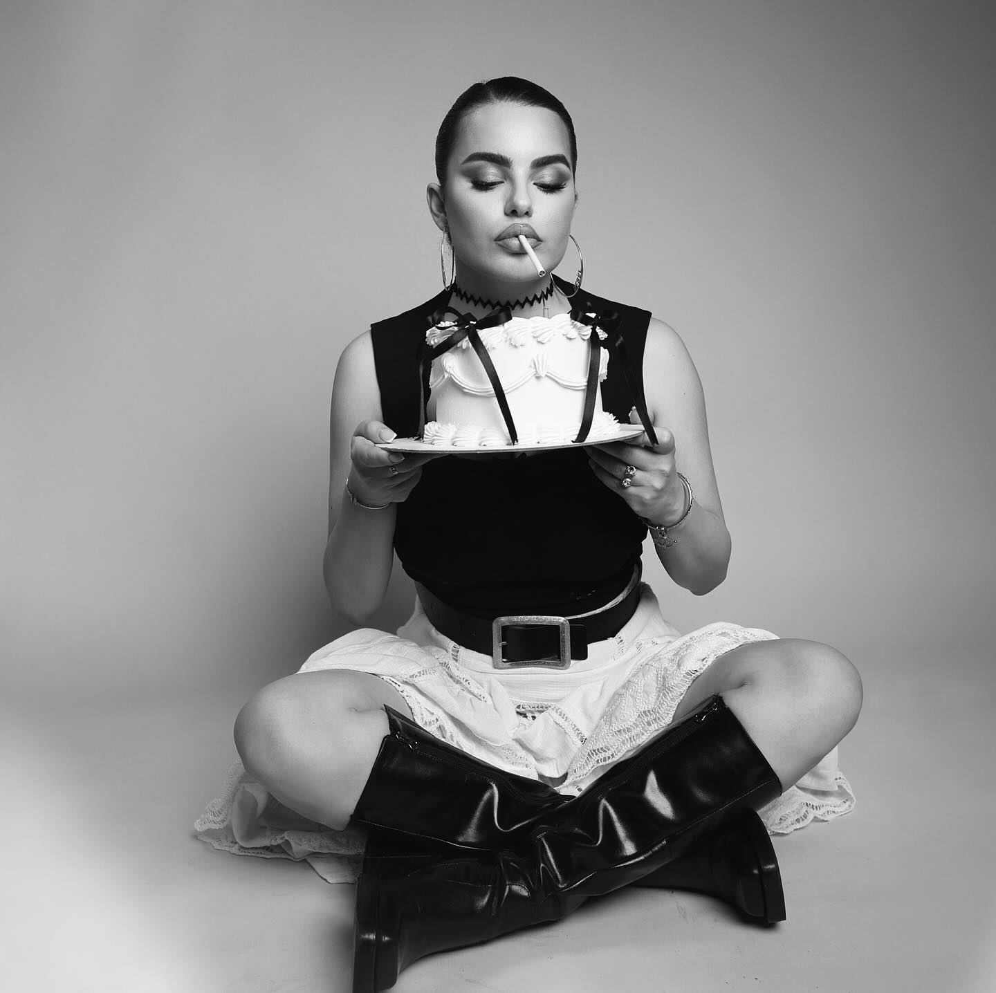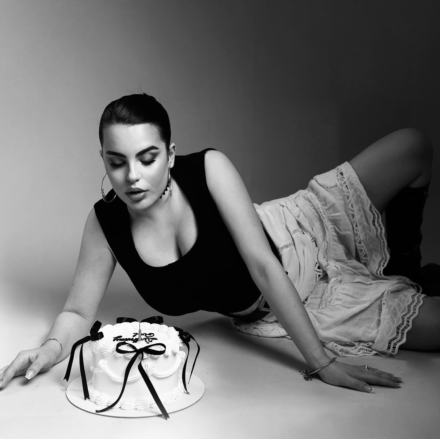 Nuk munguan fotografitë me tortë, në një studio fotografike.