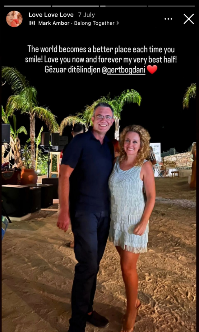 “Bota bëhet një vend më i bukur sa herë ti buzëqesh! Të dua tani dhe përgjithmonë, gjysma ime më e mirë”, shkruhej krahas një fotoje të çiftit, në ditëlindjen e 44-të të deputetit.