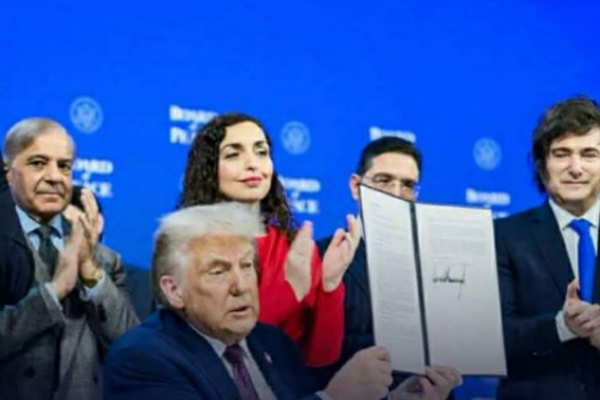 Lajme âPresidenti i Paqesâ, ShtĂ«pia e BardhĂ« ndan foton e Trumpit ku shihet edhe Osmani đ 23.01.2026 đ 17
