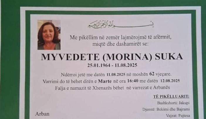 Lajme Myvedete Suka humbi jetĂ«n nĂ« aksidentin nĂ« Komoran â sot i jepet lamtumira e fundit nĂ« ArbanĂ« đ 12.08.2025 đ 0