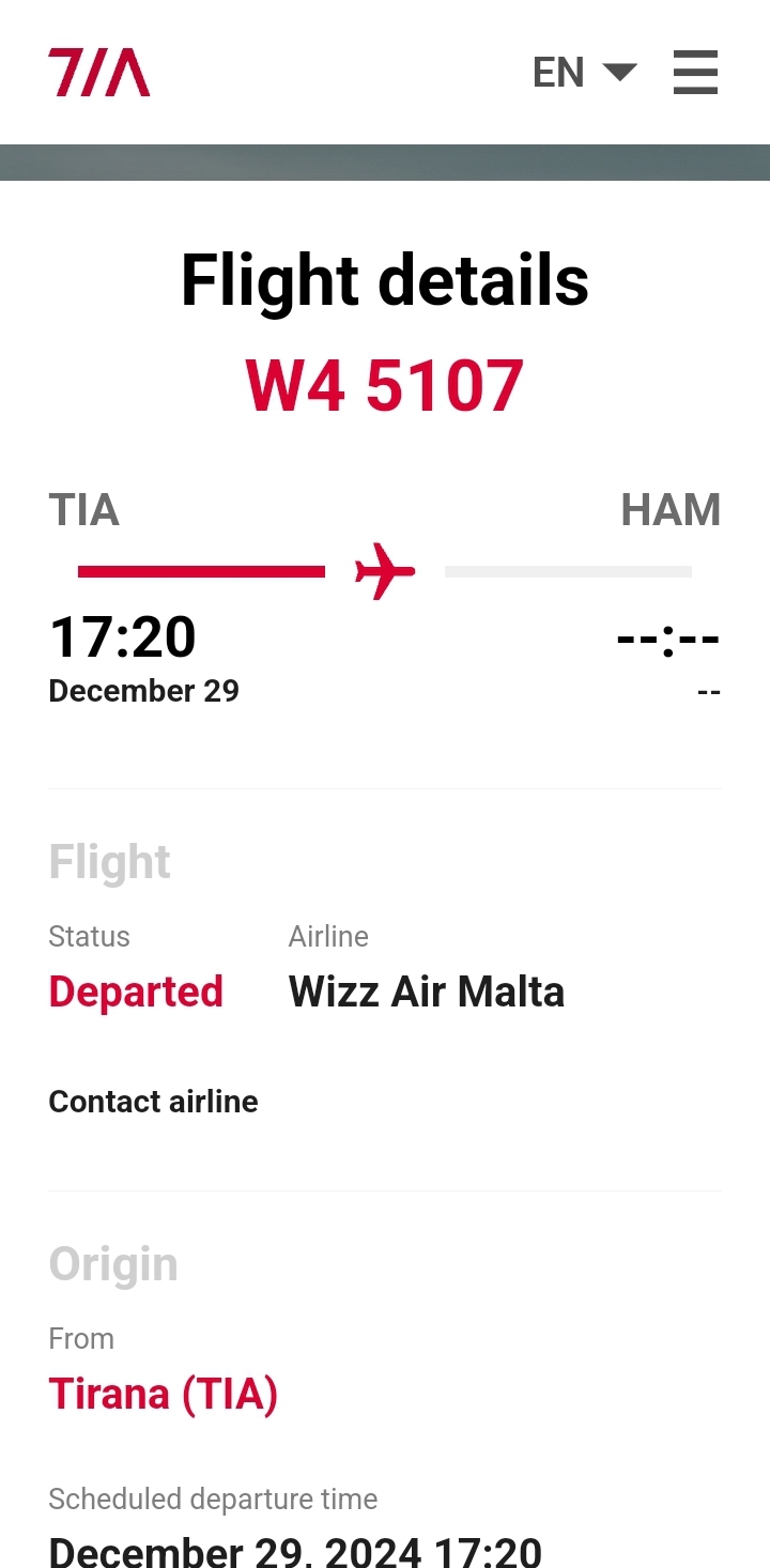Aeroporti i Tiranës evidenton se fluturimi nuk ka përfunduar, kurse ai i Hamburgut që gjithashtu monitoroi noa.al, sugjeron se avioni do të mbërrijë në orën 23 duke nënkuptuar se një fluturim i dytë i pret pasagjerët e nisur nga Tirana.