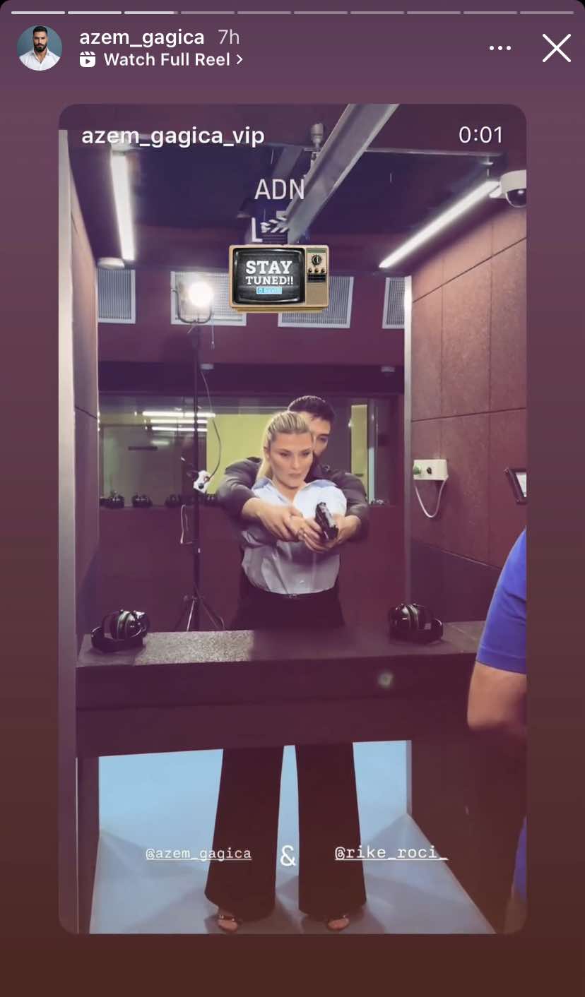 Azemi shfaqet pranë Rike Roçit, teksa shihet duke e mësuar për të gjuajtur me armë, shkruan “Kosovarja”.
