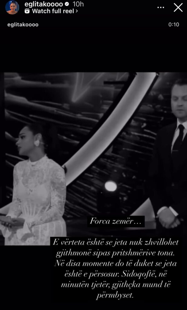 “Forca zemër … E vërteta është se jeta nuk zhvillohet gjithmonë sipas pritshmërive tona. Në disa momente do të duket se jeta është e përsosur. Sidoqoftë, në minutën tjetër gjithçka mund të përmbyset”, shkruan mes tjerash në reagimin e familjes së Eglit.