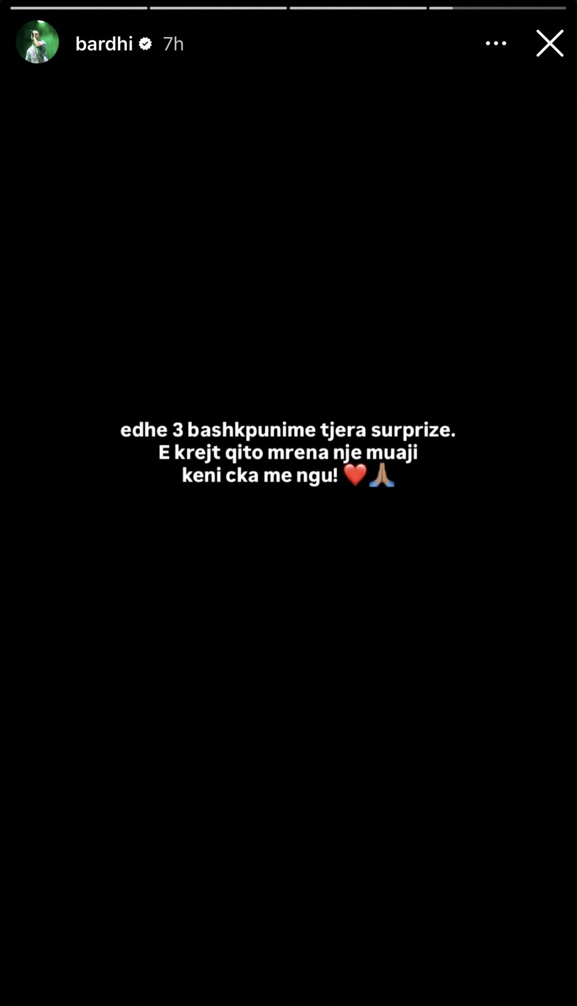 Ndërsa në postimin vijues, Bardhi zbuloi se është drejt përfundimit të një EP-je me pesë këngë, duke shtuar se janë këngë që i vijnë nga zemra: