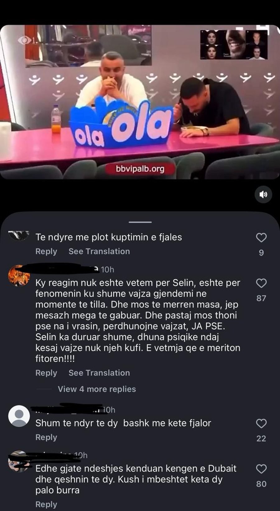 Biseda dhe komentet shqetësuese, që tejkalojnë tërësisht kufijtë e respektit, privatësisë dhe etikës brenda një ambienti publik dhe televiziv, është kritikuar masivisht nga njerëzit në rrjete sociale: