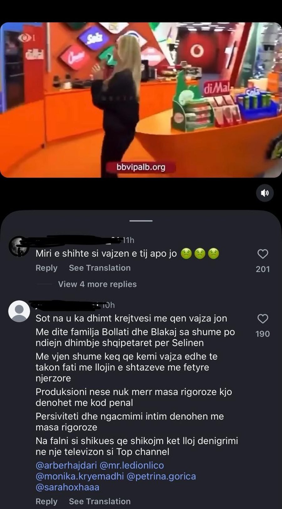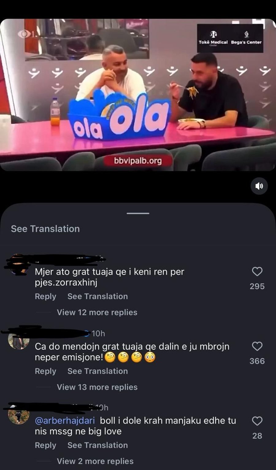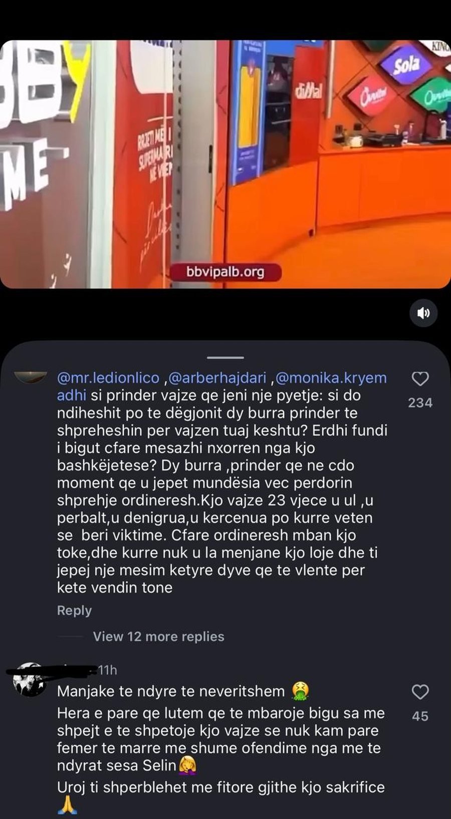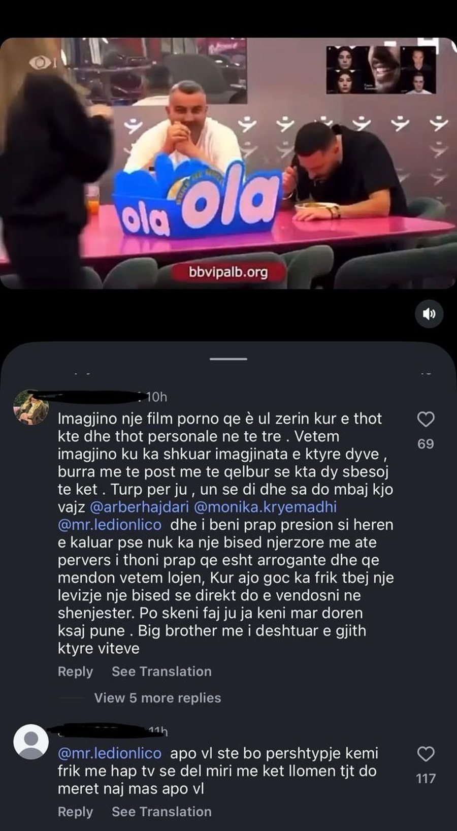 Biseda dhe komentet shqetësuese, që tejkalojnë tërësisht kufijtë e respektit, privatësisë dhe etikës brenda një ambienti publik dhe televiziv, është kritikuar masivisht nga njerëzit në rrjete sociale: