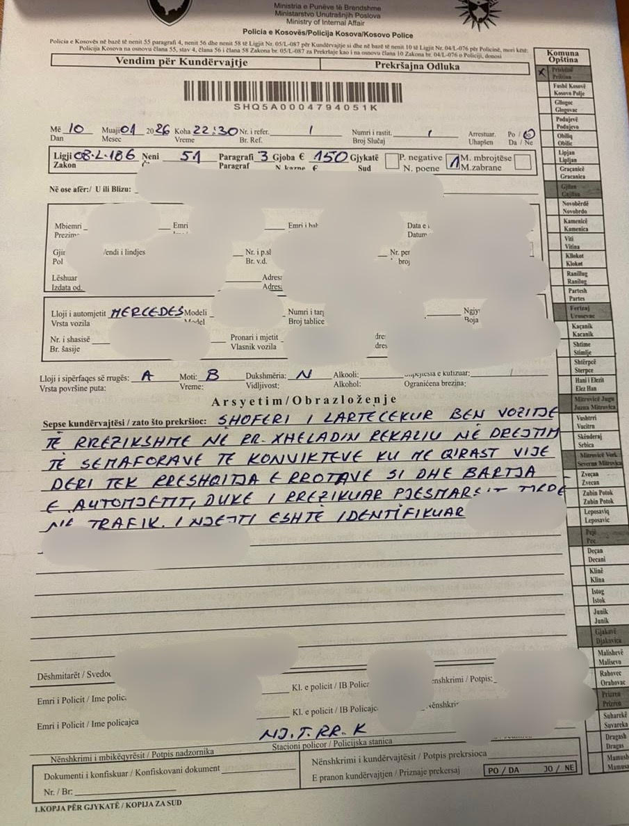 “Pas identifikimit të tij, njësitet policore kanë ndërmarrë veprimet e nevojshme ligjore dhe ndaj shoferit është shqiptuar gjoba për kundërvajtje në komunikacion, në përputhje me dispozitat ligjore në fuqi”.