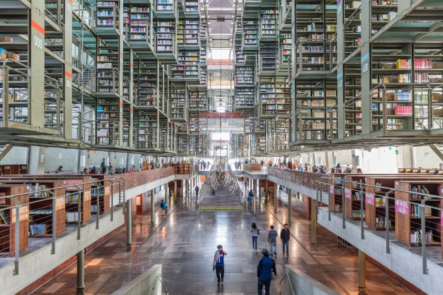 Biblioteka Vasconcelos, Meksikë – Biblioteka Vasconcelos spektakolare në Mexico City u inaugurua pak më shumë se një dekadë më parë. Dizajni i saj i jashtëzakonshëm përmban mure transparente dhe vendkalime të ndërlidhura, duke e bërë atë një nga bibliotekat më mbresëlënëse në botë.