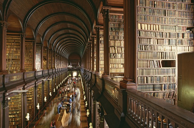 Biblioteka e Kolegjit Trinity, Irlandë – E vendosur në Trinity College, Dublin, kjo është biblioteka më e madhe në Irlandë. Ju mund ta njihni Long Room si mjedisin e shumë filmave. Biblioteka merr mbi 100,000 botime në vit dhe ka më shumë se katër milionë libra. Përveç shumëllojshmërisë së librave, ajo shquhet për arkitekturën e saj të mrekullueshme.