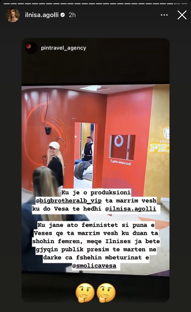 “Ku je o produksioni i BBV ta marrim vesh ku do hedhi Vesa Ilnisën. Ku janë ato feministet si puna e Vesës që ta marrim vesh ku duan ta shohin femrën, meqë Ilnisës ja bëtë gjyqin publik, presim të martën në darkë çfarë fshehin mbeturinat e Vesa Smolicës”.