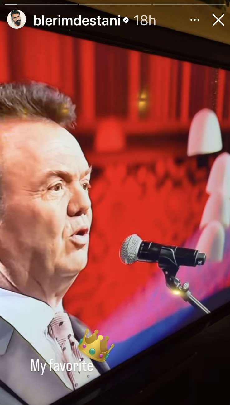 Në një Instastory të fundit, Destani ka publikuar një foto nga një performancë e këngëtarit legjendar Ilir Shaqiri, duke i vendosur në kokë një kurorë mbreti.